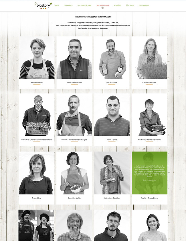 We were commissioned by Michel Crespin, creator of the "biostory" brand, to create an evolving site to present the original concept of his first biostory store in Genval, which opened in 2013. The brand then experienced a very good rise by opening other organic food stores in Brabant-Wallon.